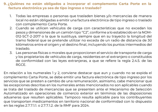 - Cando se trasladan productos de manera local (no se usan carreteras federales)